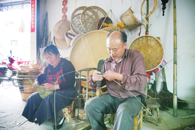 正忙着制作蔑制品的胡崇有、叶正竹夫妻俩。方 晟 摄