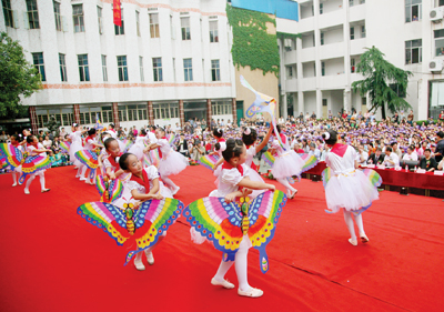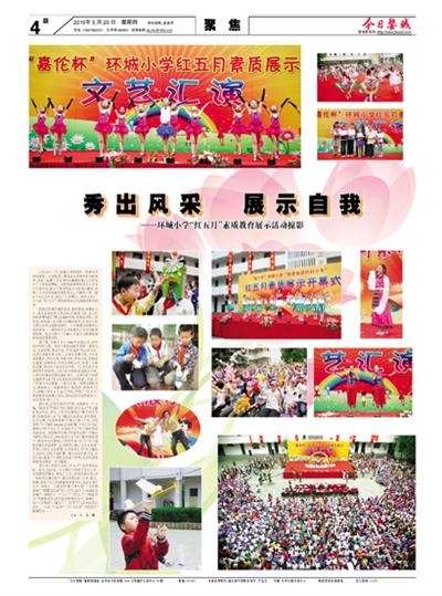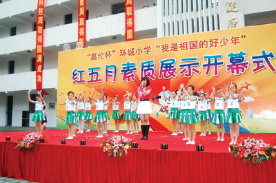据了解,环城小学自1954年创建以来,始终坚持科研兴校、科研兴教的战略思想和“德育为首、全面发展、尊重个性、开拓创新”的办学方针,以深化课程改革为核心,以师生发展为本,为学生成长服务,依法治教,科研兴校,特色兴校,积极建设进取,发展和谐、特色的学校文化,取得了丰硕的成果,在社会上赢得良好声誉。“让我们的学生喜欢我们的学校,让我们的老师体验成长的幸福,让我们的课堂充满创造的快乐,让我们的学校焕发蓬勃的生机”是全体师生的共同期望。因此,为了给每个学生搭建一个展示自我、发展自我的平台,积极响应上级教育部门“轻负担、高质量”号召,环城小学从4月26日开始,开展了 “红五月”素质教育成果展示活动,动员全体学生积极参与、亮出本领、展示才艺。