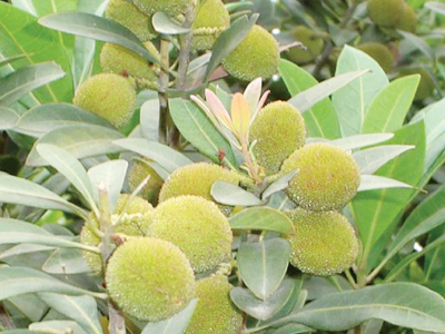 日前,记者在汤溪镇九峰山杨梅林里看到,今年的九峰杨梅果实已初长成。