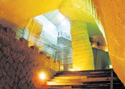 奇迹是不容易出现的,一旦出现,谁也不由自主。不是吗?岩背村人因发现石窟而离开世居的山村;旅游局因而开始吃香起来。市场经济是一只魔手,谁遇上它都会无师自通,翩然起舞,甚至走火入魔。也许有人认为,这宏大的空空石窟,神秘有余而趣味不足。于是在个别石窟里搬进了一些做工粗糙的水泥假山,在石窟壁上刻上浮雕壁画,认为这样就丰富了石窟的内涵。一个“真实”的山体内也需要套进一座“假山”吗?在古代人开凿的洞壁上刻上当代人的岩画,到底该算是谁的创造?作为一种文化遗产,龙游石窟在法律上,虽然还没有明文规定对人的行为进行限制,但从道义上说,每个人,包括游客在内都有保护古代文化遗产的权利和义务。像这样的石窟,它不是属于哪个人,在某种意义上说,甚至不属于一个国家。要使龙游石窟能为现代经济建设服务,只能是在保护基础上的利用,而不能进行破坏性的开发。
