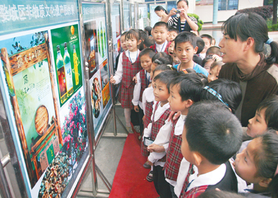 图为琅琊小学师生争睹非物质文化遗产图片。
