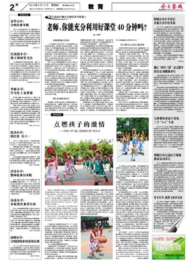 近日,洋埠小学举行了学生广播操比赛。只听到“唰唰唰”的脚步声和“一二一”的口令声,一支支队伍从远处整齐划一地走了过来。在学生结束广播操比赛之后,全校教师也分为老中青三组进行了百米测试,“预备——跑!”每位老师都如离弦的箭般冲出去,周边响起“加油、加油”学生奋力的呐喊声。虽然跑完后老师都备感疲惫,但脸上露出了喜悦的笑容!(洋埠小学汪雪群)