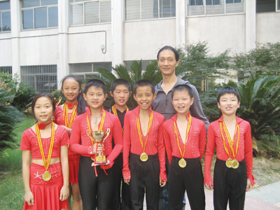 为了让学校的国际标准舞上一个新台阶,学校于2001年组建了第一个“少儿国标“特色班,专门聘请资深国标舞教师进行授课,每周四个课时,还为学生配备了设施齐全的舞蹈教室,真正达到了班级化、课程化、专业化。第一届国标班的同学经过六年的国际标准舞培训,扎实地掌握了国标舞的技能技巧,出色地完成了学习计划,在各级各类比赛中成绩斐然。市六运会更是以包揽全部金牌的骄人战绩为婺城添光彩。2005年,《快乐牛仔跳起来》作为唯一一个独立的、完整的少儿节目登上了金华春晚的舞台。