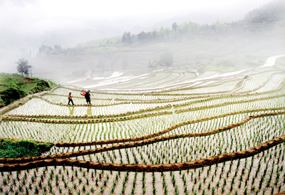“五月初五过端阳,吃完粽子忙插秧”。在塔石乡的高山梯田里,当地村民趁着连日来的晴好天气忙于田间地头辛勤劳作,插完秧后的水田犹如一幅山水画,使人陶醉在充满诗情画意的优美意境中。 记者 方晟 通讯员 傅卫明 摄