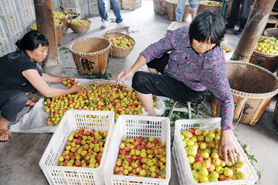 时下正是桃红李熟的时节。婺城区雅畈镇西大路村种植的早熟品种“红美李”开始上市了。昨天,来自杭州的李子批发商来到西大路村设点收购“红美李”。 西大陆村现有李园面积7000余亩,种植有桃形李、芙蓉李、红美李等10余个品种。由于今年倒春寒的影响,李子受损减产,上市日期比往年推迟了半个月,价格比往年翻了一番,平均价格在每公斤5元左右。