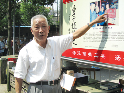 5月25日,78岁的丰志寿为汤溪小学的学生们讲抗日战争的故事,孩子们听得津津有味。丰志寿老人说,在有生之年,他要为基层的文化事业多做点贡献。正是凭着这个信念,退休28年了,老人一直都在奉献余热。2008年丰志寿被评为市“关心下一代先进个人”。今年,他又被授予第三届“高峰杯”基层文化耕耘奖。