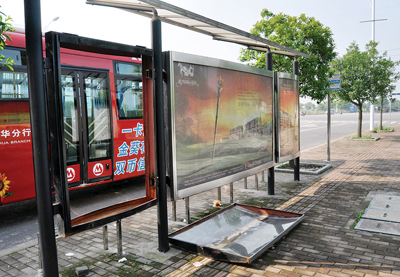 5月25日上午,笔者在金华市宾虹西路9路车终点站看到,原本装在窗框上的宣传画散落在地上。类似的情况我们不止一次看到和听说,笔者不禁想问,公交站台到底惹了谁?特约记者 于兴勇 摄