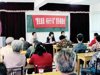 近日,城东街道青春路社区召开了以“警民恳谈,问计于民”为主题的警务通报会,社区40多位楼道长、小组长、物管以及居民代表参加。会上,城东派出所的连点民警金有新详细通报了第二季度在青春路辖区内发生的一些刑事案件,并重点讲解了一些网络犯罪的典型案例,让居民增强防范意识。同时居民也踊跃发言,为社区的治安稳定献计献策。通讯员 王聪 摄