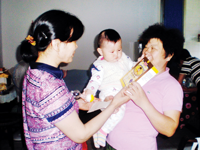 日前,城东街道人民东路社区计生协会开展了生育关怀—爱心助成长活动,给辖区内6到18个月的婴儿们都送去奶粉,还带给“新妈妈”们有关营养科学的资料,让他们的宝宝可以快乐健康成长。 通讯员 查晓东 摄