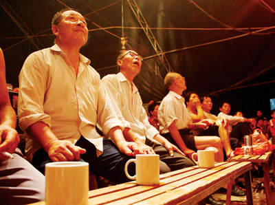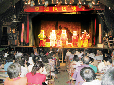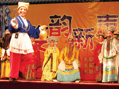 当天晚上,青年婺剧团为东阳市民带来了经典婺剧《汉武皇登基》,演员们丰富的表情、精彩的演出把一部古装戏演奏得跌宕起伏,剧中人物的真、善、美被表现得淋漓尽致,引人入胜。两个小时的演出结束,赢得了热烈掌声,台下的观众更是意犹未尽,不少市民都在问:“明天还有没有?”75岁的东阳市民陈金玉说,以前没看到过这么好看的婺剧,这场戏不仅演得好,还很有教育意义,金华的婺剧团演得真不错!