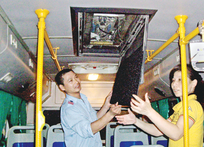 近日,市公交三公司K15路公交车队队长蒋忠献和司乘人员一起,趁着早班车发车前的时间,对K15路每辆空调车的空调系统进行仔细检查维护,清洗进出风滤网。蒋忠献说,天气渐渐热了,他们也将按照公司统一要求启用空调。空调能正常运转为乘客带去清凉,不仅是对乘客的一种负责,通过维护清洗,使空调高效低耗运行,也是当前倡导“低碳生活”在工作中的切实体现。方晟 吴潮宏 摄