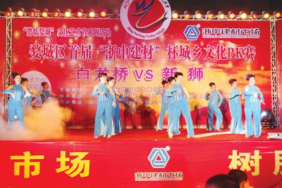 6月22日晚7时,婺城区首届“浙中建材”杯城乡文化PK赛之白龙桥对阵新狮街道,在白龙桥小广场上准时开赛。白龙桥镇作为本次活动的承办单位,精心准备了狮舞、三句半、男声独唱、排舞、铜管乐合奏等节目。一个半小时的演出,现场观众是越来越多,热情也十分高涨,时不时地喊出“好!再来一个!”最终,由白龙桥各村文艺骨干共同合作的《海宝舞》获得一等奖,新狮街道《变脸》和白龙桥临江村的舞蹈《红红火火过日子》获二等奖。