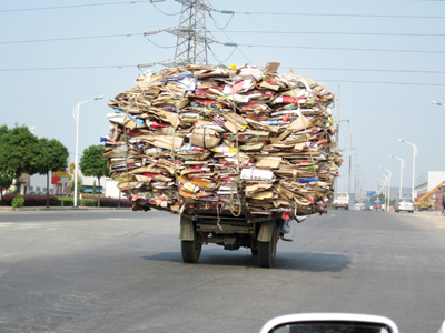 昨天,记者在宾虹路上看到,一辆三轮卡车满载着废纸在路上行驶,因为不堪负重,车身在行驶时已经出现摇晃的情况,很不安全。对此,记者提醒广大司机,为了自己和他人的安全,请远离超载。(记者 胡甦窕 摄)