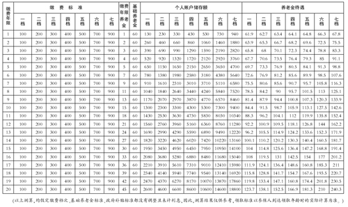 逐年、正常缴纳保险金的参保者缴费及待遇测算表