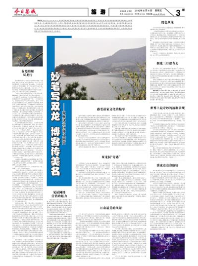 一路上美女导游给我们讲述了许多传奇故事,趣味盎然,大概半小时车程,我们到达双龙景区。一下车,新鲜空气扑面而来,大自然的开阔和清爽让大家彻底卸下昨日会议的紧张和严肃,一时间谈笑风生。导游安排我们步行去黄大仙祖宫,途径一个水库,我兴奋得像个小孩子,沿着水库大坝快跑,同事们则一边啧啧称赞风景,一边拿着相机不停拍照。据导游介绍这个水库当年是发电用的,毛主席还来视察过,山下设有纪念馆。现主要用来观光,水面上停了几艘小船,想必夏天戏水还是不错的,旁边有拓展训练基地,一群人认真地在升国旗。水库对面有三个小山包,一层一层种着茶树,目前正是采茶的时节,可以看到许多头戴斗笠的农夫穿梭其中。走过大坝,沿着水泥小路继续前行,路旁零星的几朵杜鹃花还绽开着,我顺手采下几朵,拔去花蕊,放嘴里嚼起来,有点酸涩,不如清明前的丰满多汁!