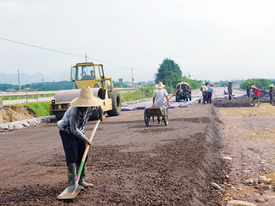 近日,记者在白沙公路施工现场看到,筑路工人顶着烈日奋战在公路建设第一线。据了解,今年国庆节前白沙公路有望竣工通车,这将极大地方便人们出行,改善当地的交通条件。见习记者 傅伟炎 摄