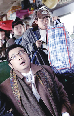 在剧中,我们跟随着“再也不会比他们更倒霉了”的两个人,经历了一票难求的春运。但电影没有“写实”春运,而是通过这样一个中国人特别熟悉的背景,描述了老板、民工的一段“囧途”。一路上,牛蛋的“憨”和“直”闹出了不少乌龙,而更让老板觉得“诡异”的是这个民工的乌鸦嘴竟然一一兑现:飞机返航,铁路断道,汽车抛锚,遭遇“骗子”,丢了钱包——倒霉蛋老板一无所有,只能和民工挤在招待所的一张小床上。这就是该剧产生的最大化学反应,也是社会现象最细腻的表现——老板和民工同睡一张床以及那一晚发生的一切,让人实在控制不住地爆笑了。他们就像是代表两个阶层的平行线,在社会错综复杂的大舞台上,不小心有了最“近距离”的交集,尽管身份悬殊。