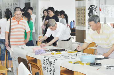 昨天上午,由婺城区城北街道组织的“人文城北”社区书画作品展在城北街道开展。区委常委、宣传部长傅关福参加开展仪式。 近年来,城北街道非常注重引导社区居民培养积极、健康、向上的兴趣爱好,社区居民中涌现出了一大批书画艺术爱好者。据了解,此次展览共展出了40位作者创作的63幅作品。区文联还组织了书法家到展览现场观摩了作品,并对部分作品作了点评。 通讯员 于兴勇 记者 周玉南 摄