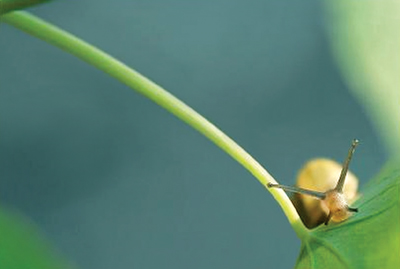 前些天看紫砂花盆里的茑萝花枝,不知道为什么低低的垂挂了下去,让人刹时联想到同为爱攀缘的牵牛花来。一直搞不清牵牛花受的那种病害,好好长着的藤枝,突然就耷拉下来,不几天就枯萎了。而比它纤细的茑萝花,似乎从不受什么病害。探视之下,发现是一只小蜗牛爬在了枝梢上。难怪了。看着在花盆背阴处,悬空中似乎一动也不动的蜗牛,心中在揣度它的想法:明明是向高处向光明处爬行的,为什么会在低低的阴影里呢?是不是为了体验荡秋千的感觉。