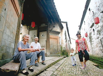 在7月13日晚上举行的婺城区首届“浙中建材杯”城乡文化PK赛颁奖晚会上,一首以汤溪方言演唱的民歌《婆婆》(又叫《老老嬷》)受到了观众们的热捧。《婆婆》这首歌不仅走红网络,也在婺城农村迅速流传开来。昨天,记者在汤溪镇寺平村采访时看到,一对老爷爷老奶奶正坐在屋檐下深情吟唱。