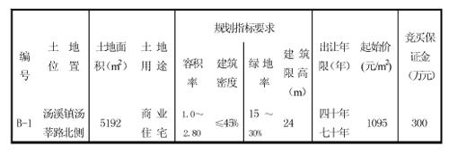 经金华市人民政府批准,金华市国土资源局决定公开出让金华市婺城区汤溪镇B-1街坊的国有建设用地使用权。现将有关事项公告如下: