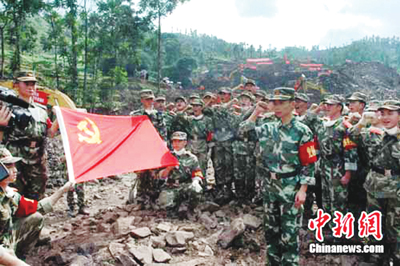 据悉,7名火线入党的武警官兵年龄最小18岁,最大25岁。在只有7分钟的火线入党仪式后,他们又迅速地投入到了一线搜救工作中去。今日,已是近千名武警、消防官兵在搜救现场连续奋战的第四天。