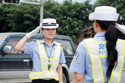 昨天下午4时许,市交警支队新招收的10名女协警,在市区双龙北街上练习换岗、交通指挥手势。女协警是交警支队从社会招考和系统各部门调用,发挥女性柔美执法优势,让驾驶员更容易接受。