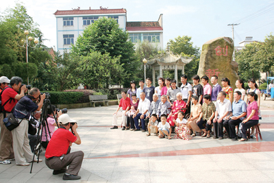 近日,金华市老干部摄影协会、婺城区老干部摄影协会组织部分会员来到汤溪镇,为104岁老寿星丰樟凤免费拍摄全家福。除了部分家庭成员在国外工作赶不回来外,丰樟凤的子孙均由各地赶回老家参加这次拍摄。据了解,婺城区老干部摄影协会计划用两年时间,对100岁以上老寿星免费拍摄全家福。