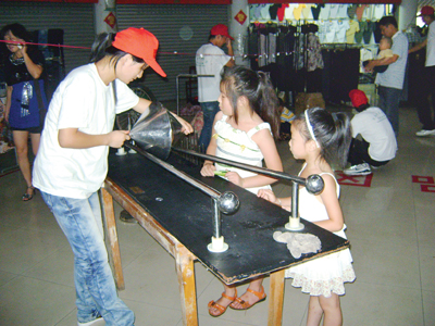 7月19日,浙江师范大学数理信息学院“流动科技馆”走进了城北街道站前社区太阳城广场,为群众送去了趣味化、生活化的科技服务。无需借助外力力锥体就能自发从低处往高处滚,飞速旋转却永远掉不下来的“陀螺进动”,带上特制的红蓝滤光眼镜就可以看到飞机破云而出的壮观现象……这些科普知识,周围的群众们都有机会亲身体验了。现场还展出了30余幅科普海报,内容贴近百姓生活,实用性强,备受妇女、儿童青睐。实践队员们表示希望通过这些科普宣传海报和科普知识,让更多人了解这些小妙招,让科技贴近我们的生活。记者 周玉南 通讯员 李彦 摄