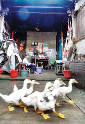 清晨的东夏村,鸭子从家中出发,赶到村边的小溪里捕食。方晟 摄