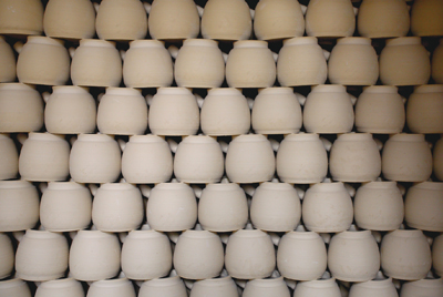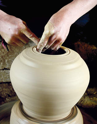 吴根法说,要制陶,首先要选土。烧陶的土,要选有粘性、干净、无杂质的黄土。汤溪泥土细致,适合制陶,以前还曾有过规模较大的厚大窑,或许这也是吴氏先祖选择汤溪定居的一个原因。选定的泥土得放在太阳底下晒个几天,干了之后,再用脚使劲踩上几道,然后用细孔的筛盘仔细地筛出最软最细的泥土。这几道工序,是制陶的先决条件,也是一件陶器品质如何的保障。