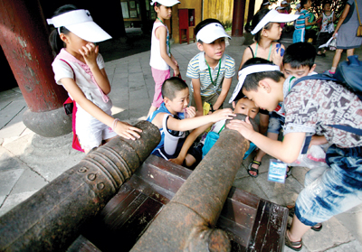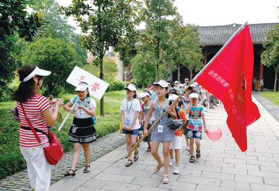 7月27日清晨,一群孩子在婺州公园,和公园里早起的鸟儿一起唧唧喳喳,喧闹个不停,他们沿婺江而上,往八咏公园一路逛过去。原来,这是由小学生假日活动中心、雏英活动部、天之骄子旅游有限公司联合推出的文化夏令营。这是一次别开生面的夏令营,因为孩子们在这个夏天,亲近的是他们的家乡,而不是外地的名胜古迹。