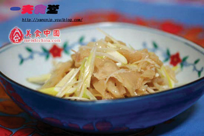 鸡爪在没有煮之前顺着鸡爪的骨头用刀划开,煮熟后,用小刀轻轻一剔,骨头就去掉了,然后把没了骨头的爪子切丝,用糖、醋、盐、味精、香油、葱花拌一拌。