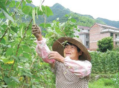 近期正值箬阳四季豆收获上市。昨天上午,记者在箬阳乡沙坑村看到,村民正在地里采摘四季豆。