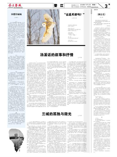 一天,一个身材微胖,胡须杂乱的中年老师敲响了我的房门,我发现一缕阳光挨着他的后背来到我潮湿的单人间。那个中年男人和我一样,中文字的毒很深。在他的引领下,我渐渐走出了仄逼的单人间,和兰城一帮爱好文字的朋友搭上了。和那群爱好文字的朋友在一起,我发现在兰城,我生命里的微光才开始点亮。直到现在,我发现这股微光还在兰城隐约的朝我闪烁,当然这股微光中,也夹杂着几位同事,虽然他们不写文字。