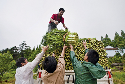 昨日清晨,记者在罗店镇盘前村看到,几位村民正忙着将清洗整理好的莴苣装车。“我们几户村民一起包车,把菜统一运到市区东站的批发市场。今天上午我们大概装了四五车。”村民吴新连说。据了解,今年盘前村的莴苣获得丰收,亩产约2000公斤。目前销售行情较好,最高批发价为每公斤2.6元。