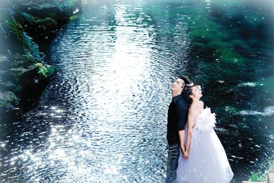 山水多情与人亲。双龙风景区位于金华山麓,是国家级风景名胜区、国家AAAA级风景旅游区、国家级森林公园、国家级非物质文化遗产地。金华山雄伟的山体宛如盘卧着的巨龙,拱护着林木幽深的景区。近80平方公里的森林宛如另一个世界。春天山花烂漫,夏天凉风习习,秋天红叶满山,冬天琼楼玉宇。每个季节,双龙都呈现出大自然动人的一面。对许多游客来说,旅游不仅是为了见识名胜古迹,更重要的是为人与人之间的交往,寻找一个沟通的机会。这也许是许多情侣结伴旅游的原因。双龙风景区最吸引人的景点还要数双龙洞了。“水不在深,有龙则灵。”双龙洞外,绿树、碧水、怪石布置出层层叠叠的风景。双龙洞的洞口非常开阔,能容纳下上千人。每当炎夏,附近的人们都喜欢到洞口来乘凉。洞的两侧有一青一黄两块钟乳石,酷似两个龙头,双龙洞也因此得名。关于双龙洞,还有一个传说。说古代婺州连年大旱,青龙和黄龙偷来天池水,拯救了百姓,却因触犯天条,被王母娘娘用巨石压住,困在双龙洞内。传说还有另一个版本,说青龙和黄龙是夫妻,青龙是夫,黄龙是妻,青龙偷天池水被王母娘娘用巨石压住后,黄龙不肯离开,一直陪伴在青龙身边。双龙洞外洞与内洞之间隔着一块巨大的石屏,只有一条宽3米多的地下河水道连通。水道离地下河顶灰岩不到半米的间隙,进内洞一定要仰卧小舟而入。“百年修得同船渡,千年修得同枕眠”,一起仰卧进双龙洞,成为情侣们最喜爱的环节。