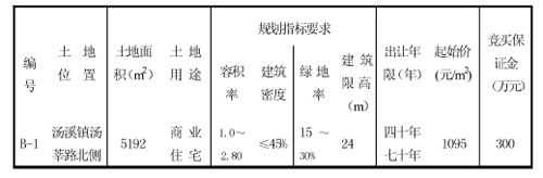 经金华市人民政府批准,金华市国土资源局决定公开出让金华市婺城区汤溪镇B-1街坊的国有建设用地使用权。现将有关事项公告如下: