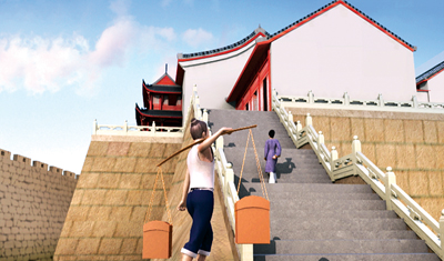 镜头从天上拉到地下,俯视婺州府的全景视角,转切成小姑娘登临八咏楼的近景视角。随后,整幅古婺州的画卷一一展开。记者在土豆网上看完这部5分39秒的《婺州古韵》,寻访到制作该宣传片的导演赵苏桂,他告诉记者,出于对婺文化的喜好,他利用数字复原技术,让古婺州在三维动画里动起来,他想为金华这座历史文化名城提供一张有声名片。