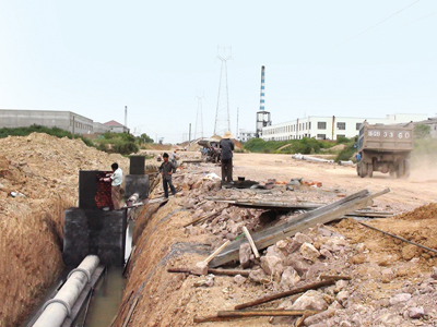 昨日,婺城新城区雅苏地块500亩工业用地上车轮滚滚,灰尘弥漫,大型机械和卡车在紧张作业。根据新城区建设指挥部的工作安排,雅苏地块11家企业力争今年开工建设,目前政策处理工作已经完成,与之配套的基础设施建设正在加快建设中。通讯员 戴增贵 摄