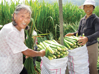 昨日,记者在汤溪镇上叶村看到,村民们正忙着采收冷水茭白。村民说,他们这里的冷水茭白个体较大、品质好,单个重量在0.2公斤以上,比普通的大一倍,质地也特别白嫩,今年的收购价比往年都高,市场价也要10~12元/公斤左右。这些天来,村民都忙得不亦乐乎,浦江、兰溪、萧山各地都有客商前来收购。记者 月映红 摄