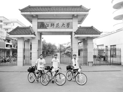 参与自行车环游浙江的三人,都是浙师大地理与环境科学学院的学生,平时他们对各地的人文、地理等十分感兴趣,也经常组织或参加学校和团队举行的野外活动。特别是洪佳飞,作为班里“阳光车队”的队长和地理协会的野外向导,经常趁着天气好的周末,带领一班同学外出郊游、登山等等,实地学习地理知识。