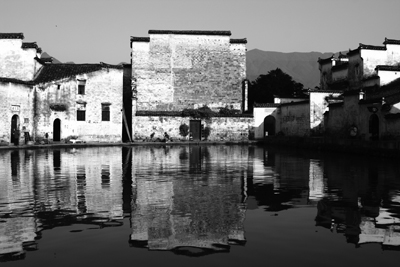 月沼,是宏村最动人的一处剪影,那半圆的一轮,带着“花要半开,月要半圆”的意境,摄人心魂。放眼望去,两岸高低起落的马头墙倒映在弯弯的月沼中央,偶有鱼儿耐不住寂寞,“啵哧”一声划过水面,留下圈圈旋转的涟漪。