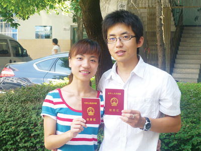 “今天早上我们五点多就起床了,我是第一个到这里登记的。”在金发颐高数码广场工作的闫斌告诉记者,他的未婚妻叫周锦,是金宝贝金华早教中心的一名老师。考虑到今天是“七夕”节,来结婚登记的人肯定不少,所以两人很早地来到这儿“抢占天时地利”。顺利地办好登记手续之后,拿到结婚登记证书的这对情侣大秀恩爱:“能在咱中国人自己的情人节里登记结婚,让牛郎织女见证我们的爱情,我俩我们觉得很有纪念意义。”