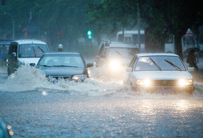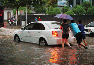 昨日下午,金华市区突然下起了倾盆大雨,不少路面排水不畅,积水成河,对交通造成了不利影响。记者在市区八一北街与人民西路路口看到,路面积水十分严重,最深处大约有三四十厘米,过往车辆不时激起层层“浪花”。随着水位的进一步提升,一些往来车辆望而却步,但部分车辆冒险通行,导致熄火抛锚,驾驶员只能摇头叹气自认倒霉。不少市民只能挽着裤腿,光着脚试探着一步一步蹭过路口。