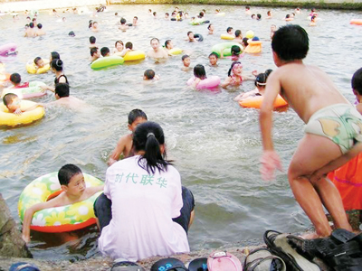每到傍晚四五点钟,罗埠镇上章村原生态游泳池里就人声鼎沸,热闹异常。据村民们说,该游泳池原本是一个长满水草、满是淤泥、垃圾覆盖的池塘。去年,上章村通过新农村改造,把这口臭气熏天的池塘改造成了景观池塘。本报在此提醒广大家长和小朋友,儿童下池游泳时,一定要有大人监护,以确保安全,切不可随意下水。