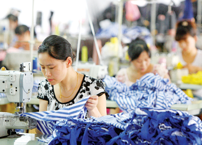 日前,在位于城西街道七里殿社区的金华市飞亚针织制衣厂里,记者看到40多名加工人员正忙着赶制衣服,以尽快完成订单要求的数量。该厂负责人周淑飞几年前从企业下岗,在街道、社区工作人员的支持下搞起服装加工,目前已设立了两个来料加工点,加工人员也从当初的30多人增加到80多人。据周淑飞介绍,今年以来,随着经济形势企稳回升,外贸订单量有所增多,上半年的总订单量比去年同期增加了30%左右,到目前为止已发放来料加工费近80万元。