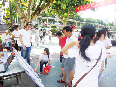 在实践队中,有些专门负责解答市民问题的队员,虽然是大一新生,只学了一年的法律知识,回答问题难免有点磕磕绊绊,但是对于他们认真负责的态度,过路的行人却都竖起大拇指,称赞道:“这批大学生真认真,这个活动办得真好。”对于驻足在食品安全宣传板前的市民,队员们也都争相为其解说,他们那认真的态度,那绘声绘色的讲解让人感觉很温暖很欣慰。