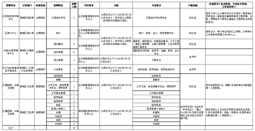 2010年婺城区部分事业单位招聘工作人员具体职位及资格条件表
