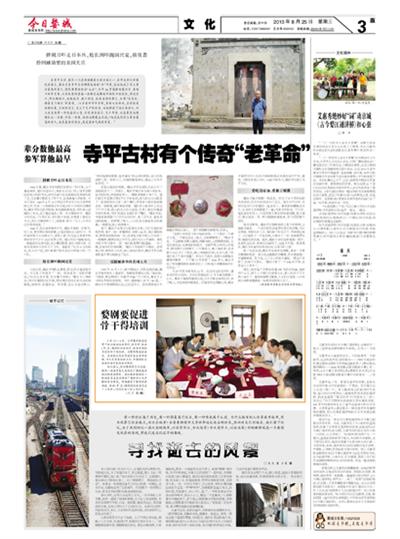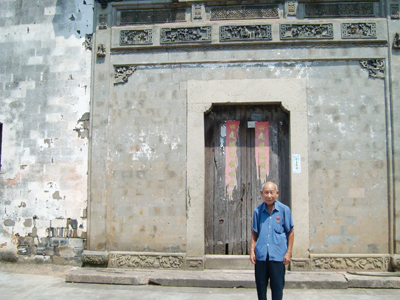 在寺平古村,戴氏一门是汤溪镇最大的宗族之一。在早先修订的戴氏宗谱上,戴汝才是寺平古村硕果仅存的“亦”字辈,这让他成了村上辈分最高的老人,村民都尊称他为“太公”。今年86岁高龄的戴汝才,在战斗的岁月里,从国民党的普通一兵转变成解放军的战斗组组长,跨过长江,跨过鸭绿江,说起抗日、渡江战役、抗美援朝的事儿,大有“谈笑间,强虏灰飞烟灭”的豪情。19岁离开寺平古村,参军入伍的他,直到抗美援朝结束,才回到村上,当上了生产队队长。从炮弹底下活过来的人,对人世自然有一种包容的心态,村民告诉我们,几十年来,从没有见他跟谁红过一次脸,吵过一次架。他的女婿戴志安说:“他是我们村上辈分最高的老人,也是最老的战士,更是最和气的老寿星。”